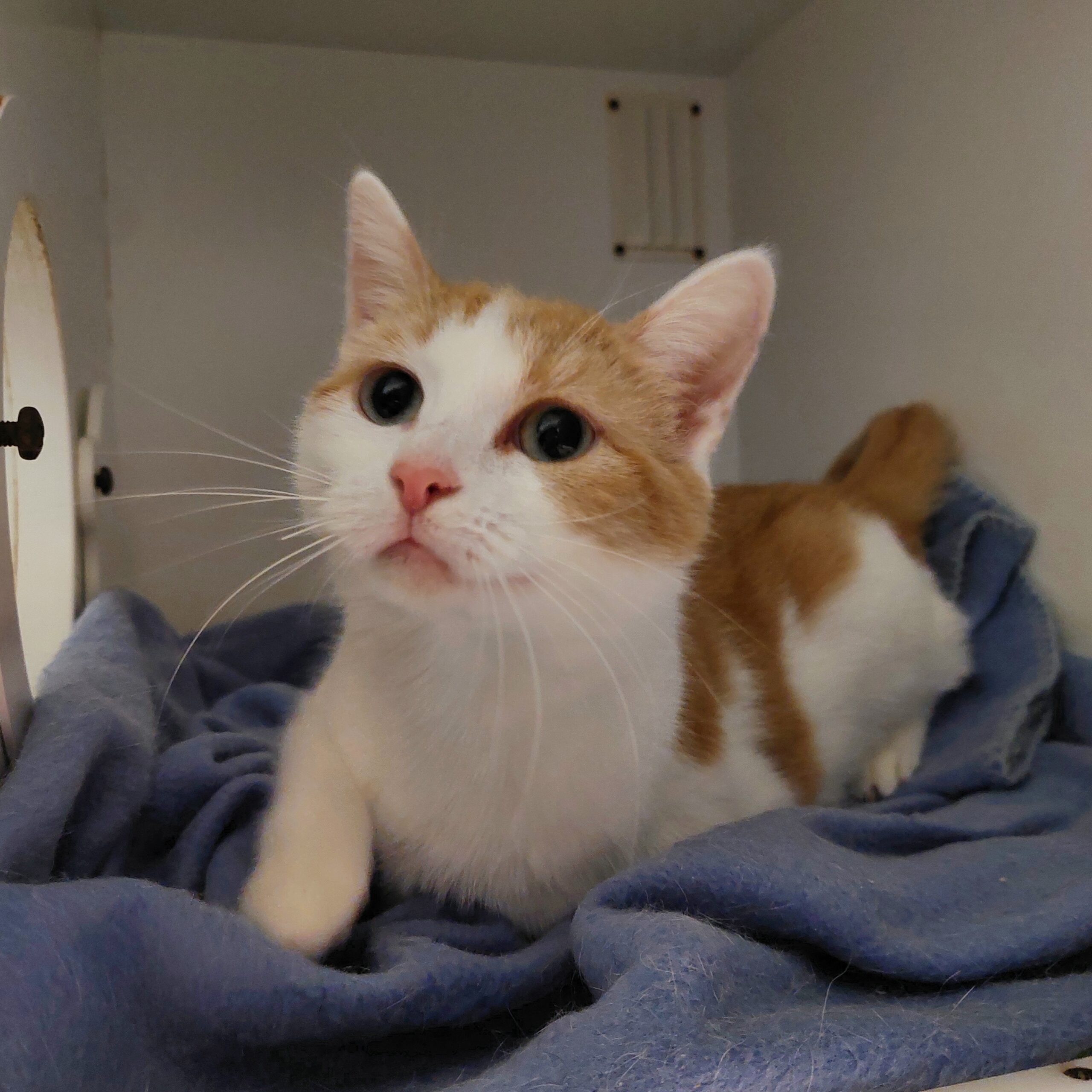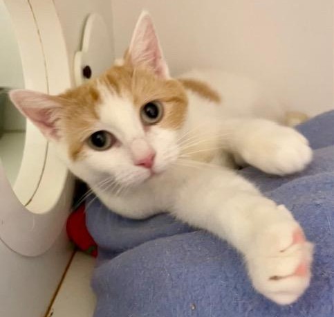 Chicken is a super affectionate ginger & white lady just over a year old, and she’s ready to find her forever home. True to her sweet personality, she adores attention and will happily roll over the moment you reach out, inviting head and ear scratches with a purr.