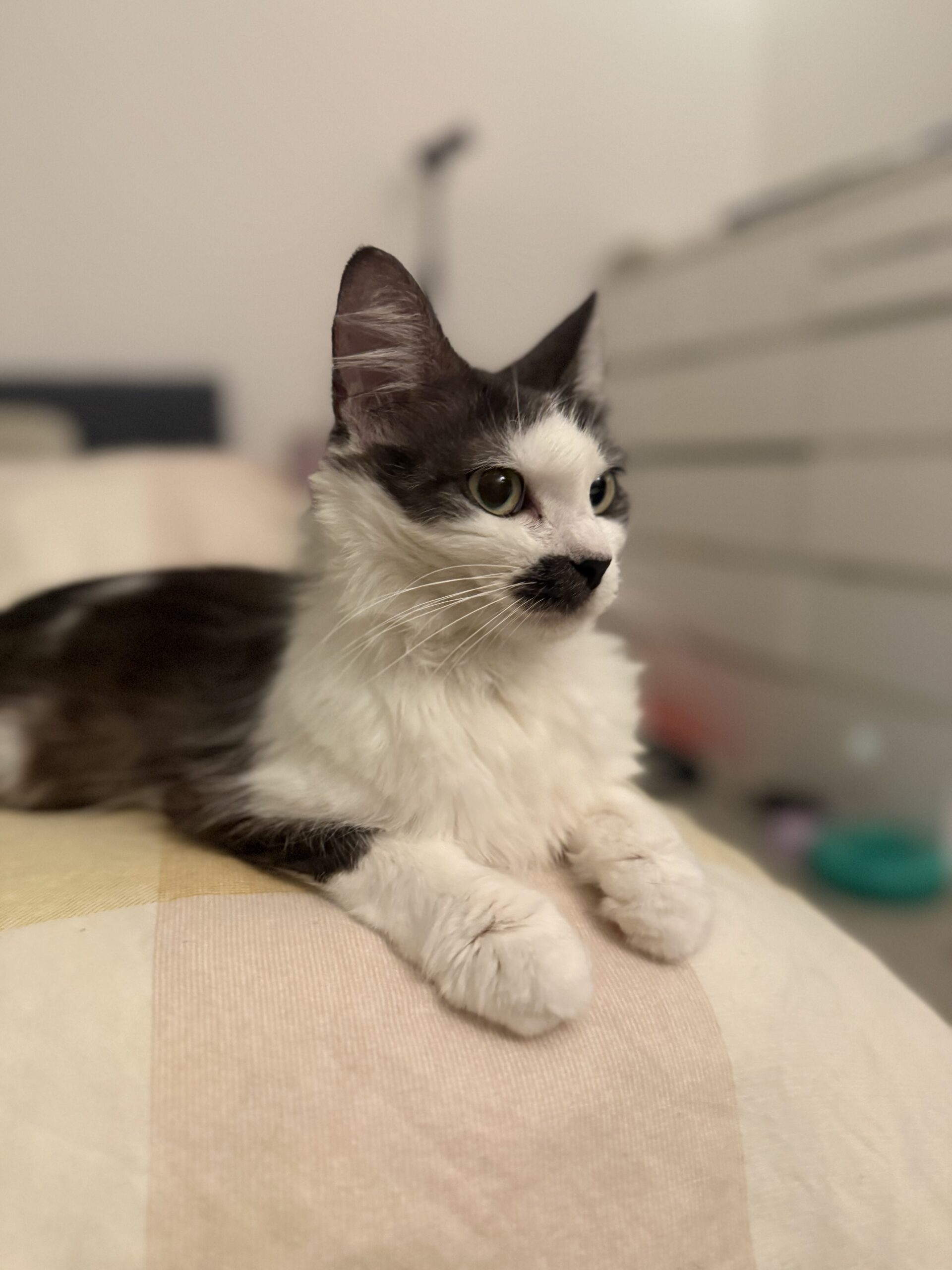 When she’s the only pet in the home, Frittata truly shines. She is a very sweet and affectionate cat who loves cuddles and will happily curl up with you after a long day. While she can be a little cautious when meeting new people, she settles in quickly once she feels safe.