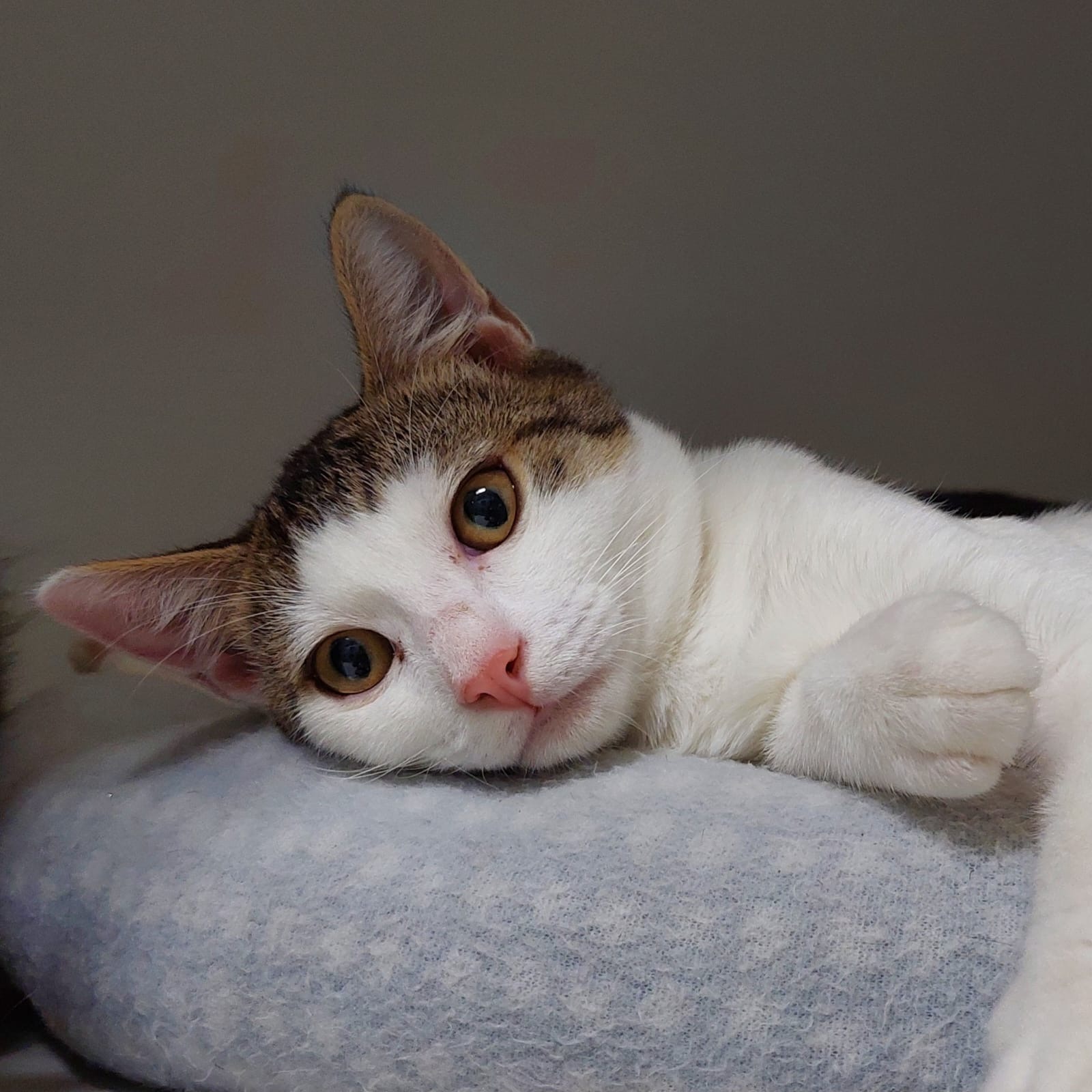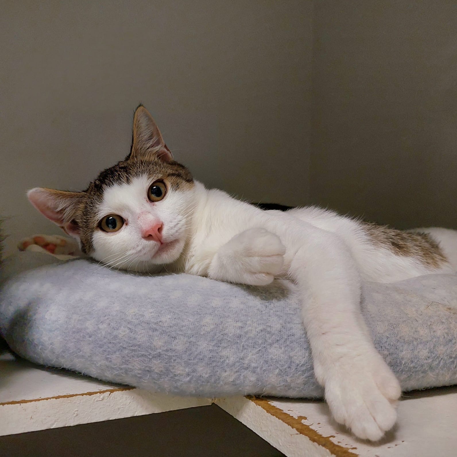 Despite his early circumstances, Hudson has grown into a happy, loving kitten who enjoys being around people. He’s quick to start purring when you give him attention and happily joins in for playtime or cuddles.