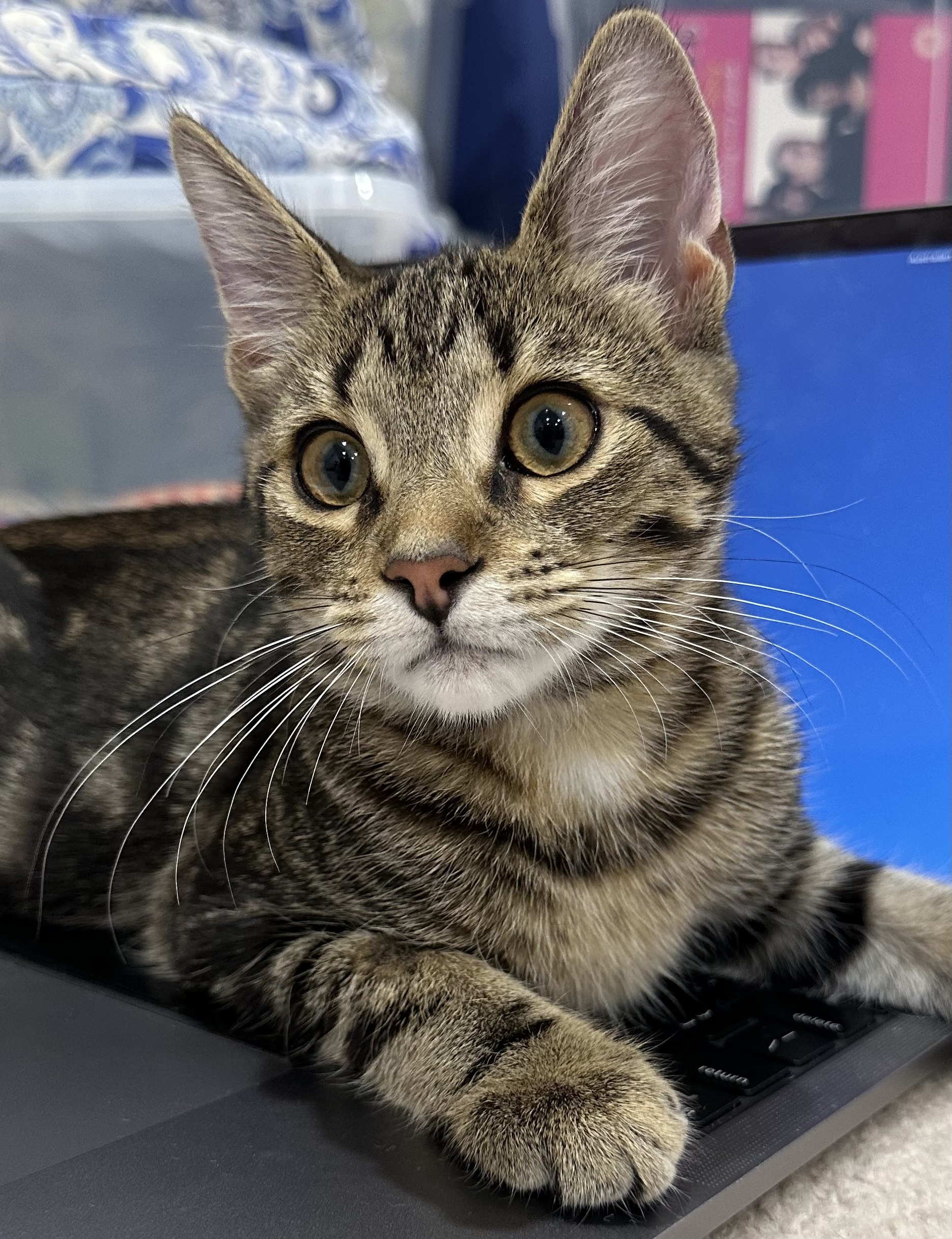 Minette is a tabby kitten just shy of 5 months old, with the most beautiful markings.