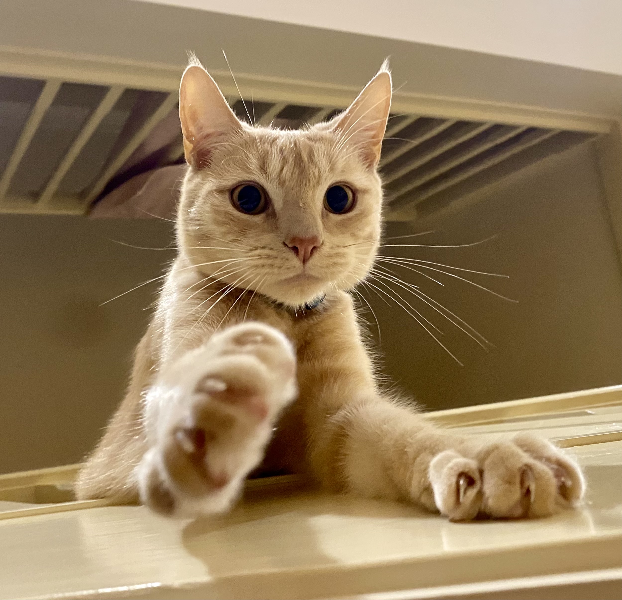 Mr Blondie is a sweet five-year-old ginger cat who came to SAFE after his owner moved overseas. He’s a gentle soul who forms strong bonds with his person and loves nothing more than being close. Head rubs, lap cuddles, sunny naps, and relaxed tummy or neck rubs are some of his favourite things.