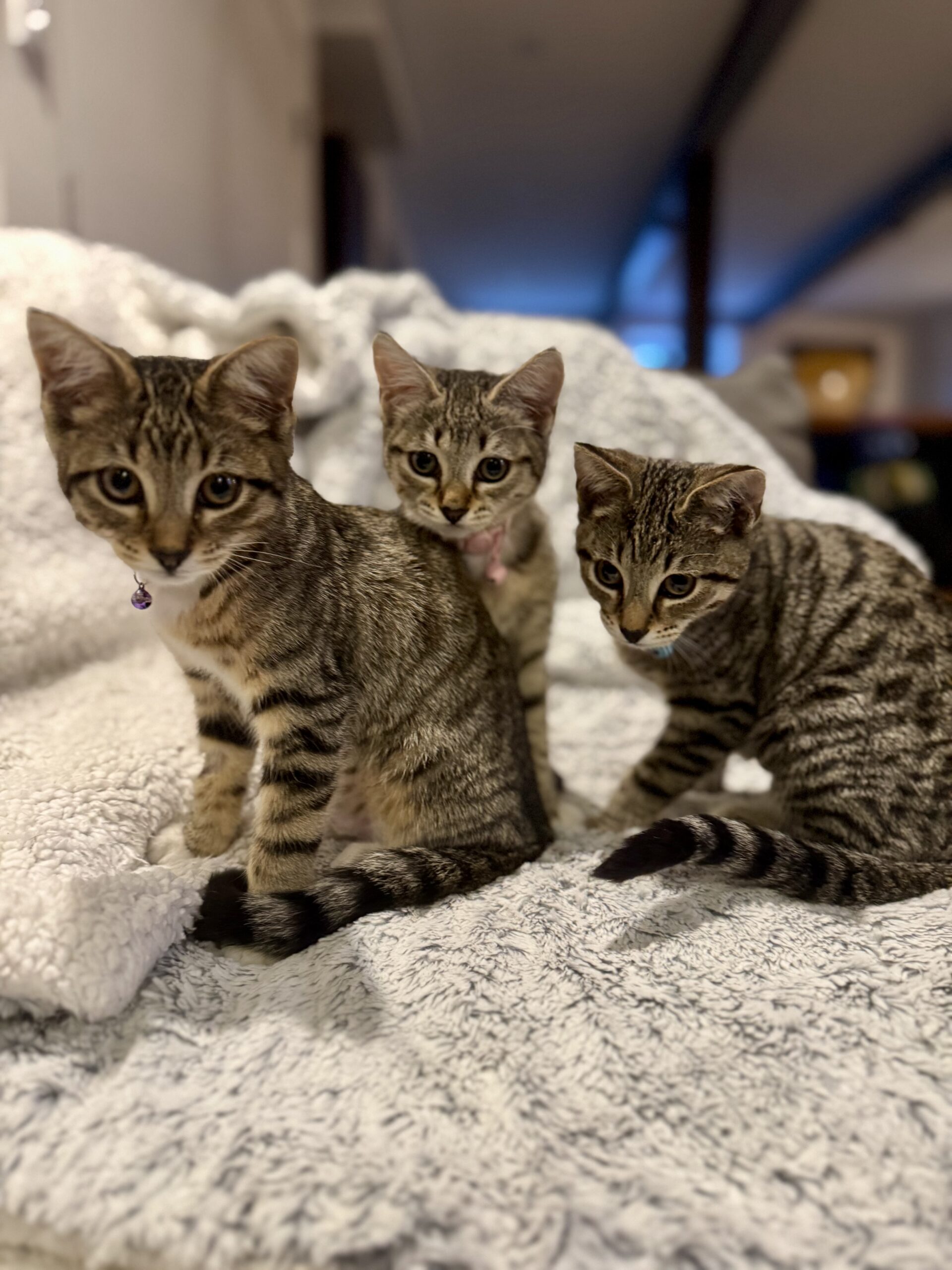 Like any kitten her age, she’s playful, curious, and full of affection, enjoying toys, exploring, and gentle snuggles in equal measure. Rafaella is currently in foster care with a dog, several cats (including her two siblings), and she gets along beautifully with everyone — a testament to her easy-going and loving nature.