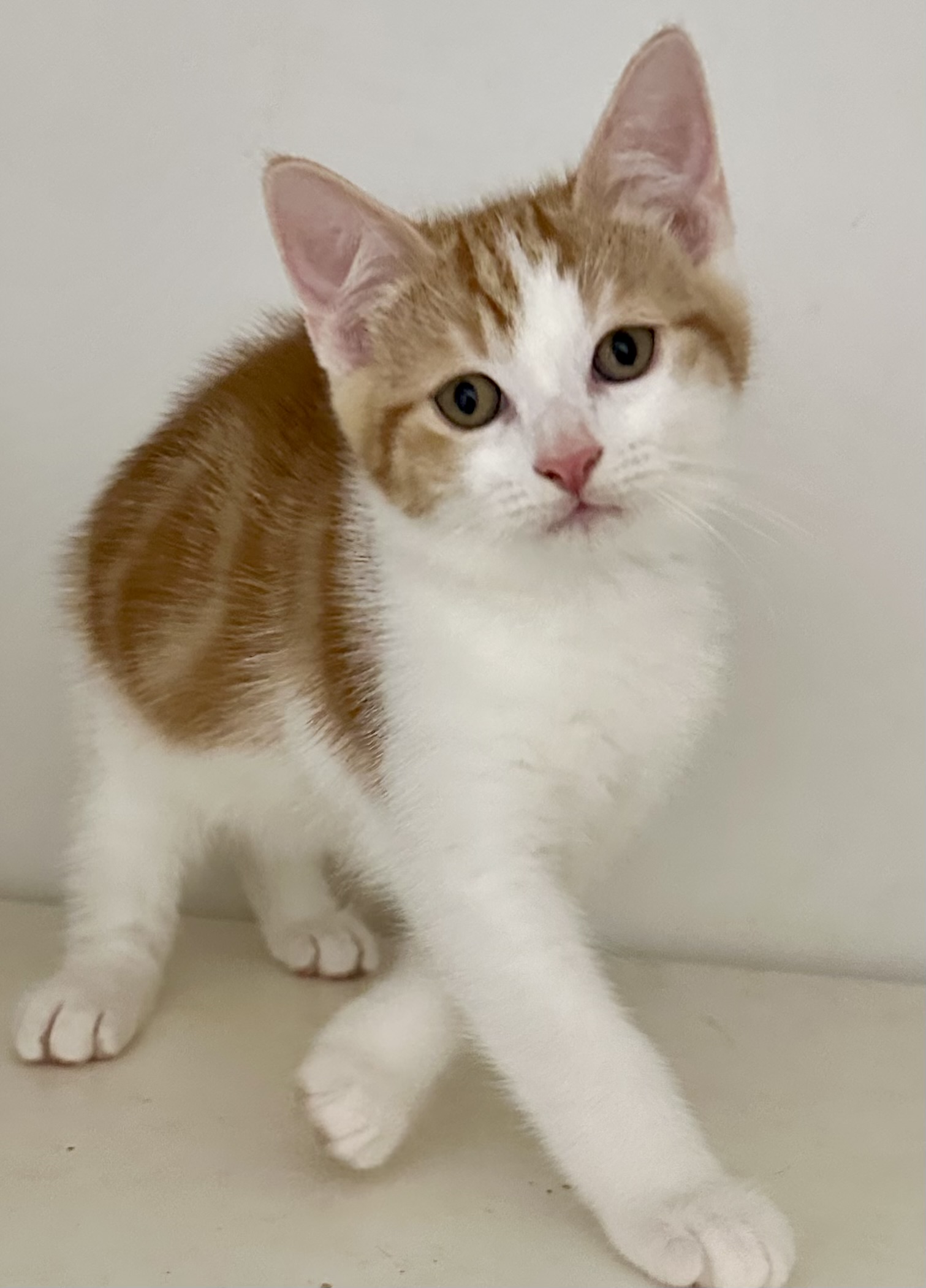 Toast is a gorgeous ginger and white 3-month-old kitten who has grown up with his mum and two siblings. While he hasn’t had as much human interaction as we would have liked, he is a sweet and gentle boy who is happy to be held and cuddled once he feels safe. Toast is naturally curious and playful, and his confidence continues to grow as he learns more about the world around him.