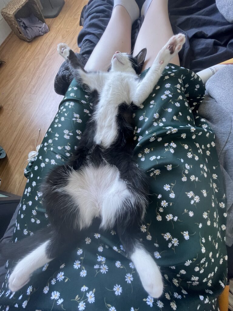 โ€œShe is super cuddly, playful & very vocal when she wants attentionโ€ but she had absolutely no sense of where the side of the bed was and insisted lying right on the edge. She fell off so much that we had to put pillows on the floor! “